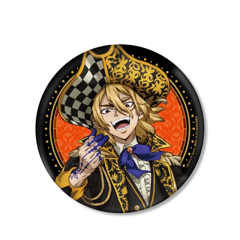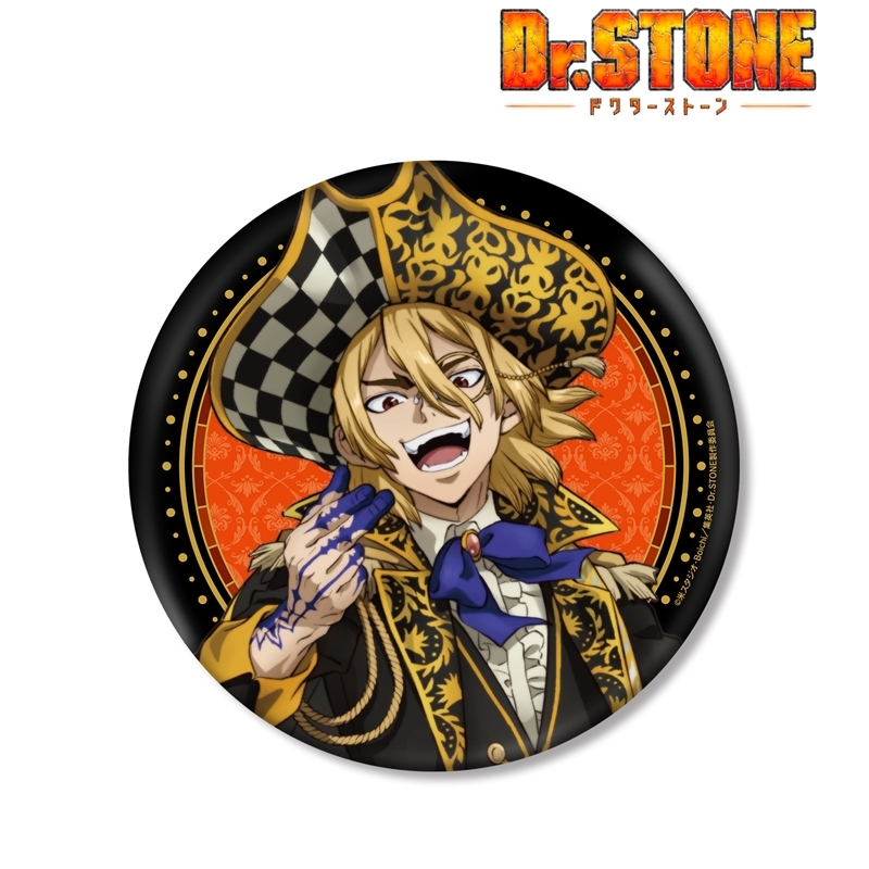 「原作:稲垣理一郎、作画:Boichi」による漫画原作のアニメ「Dr.STONE」(ドクターストーン)より、キャラクターグッズ『【グッズ-バッチ】TVアニメ「Dr.STONE」 描き下ろしイラスト 七海龍水 怪盗団ver. BIG缶バッジ【再販】