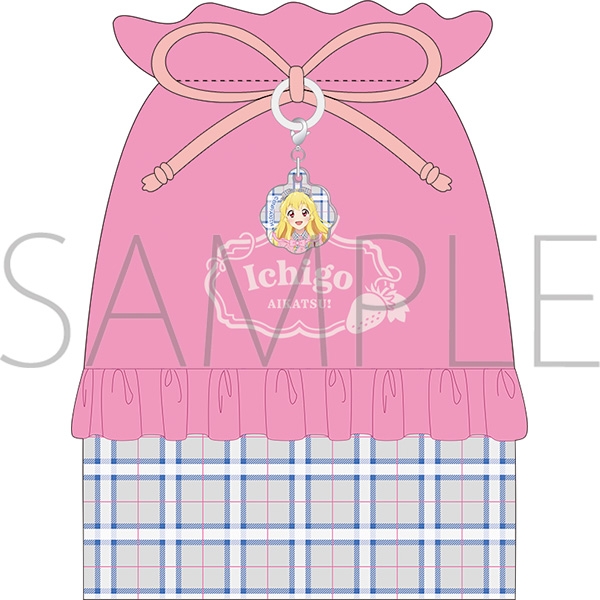 バンダイのデータカードダスを原作・原案とした「アイカツ!!」シリーズより、キャラクターグッズ『【グッズ-巾着】アイカツ! アクリルチャーム付き巾着/-Cute Check Style ver.- 星宮いちご