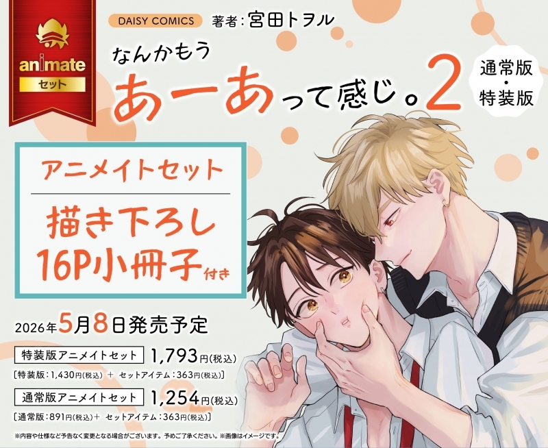 「 」より、ボーイズラブのBL漫画『【コミック】なんかもうあーあって感じ。(2) 通常版 アニメイトセット【描き下ろし16P小冊子付き】