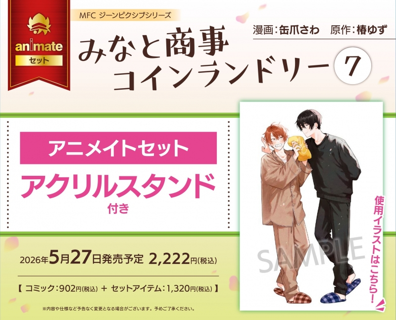 「 」より、ボーイズラブのBL漫画『【コミック】みなと商事コインランドリー(7) アニメイトセット【アクリルスタンド付き】