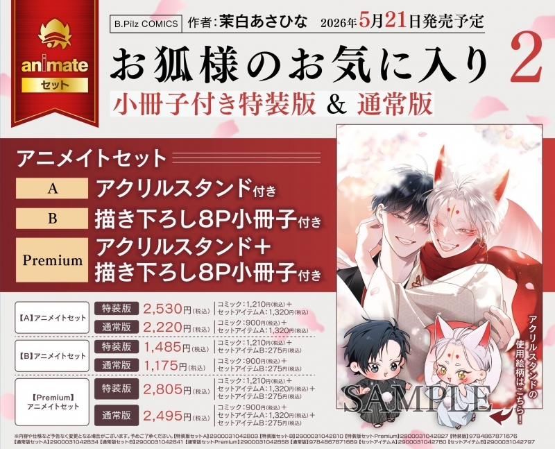[BL漫画] お狐様のお気に入り第2巻 特装版 アニメイトセットA【アクリルスタンド付き】 2026年5月21日発売 で取扱中