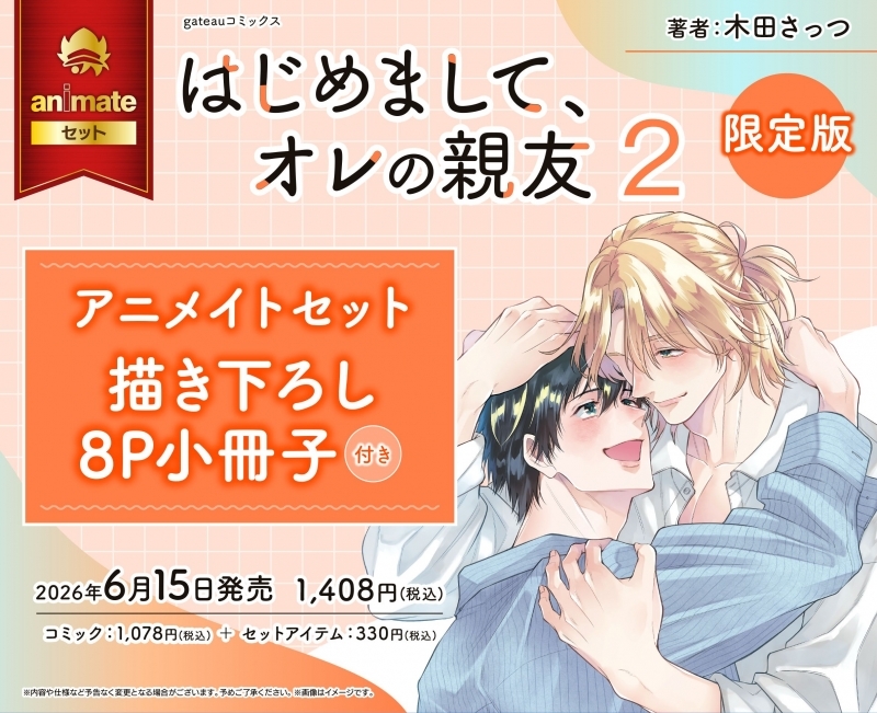 「 」より、ボーイズラブのBL漫画『【コミック】はじめまして、オレの親友(2) 限定版 アニメイトセット【描き下ろし8P小冊子付き】
