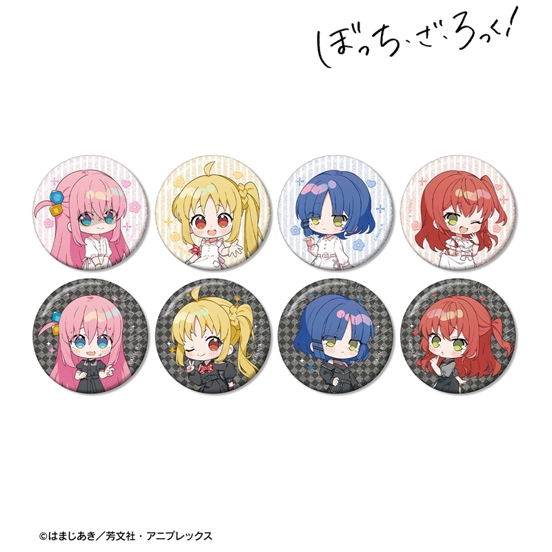 はまじあき先生原作のアニメ「ぼっち・ざ・ろっく!」(略称: ぼざろ)より、キャラクターグッズ『【グッズ-バッチ】アニメ「ぼっち・ざ・ろっく!」 上倉エクさんイラスト 白いワンピースver.&黒いワンピースver. トレーディンググリッター缶バッジ