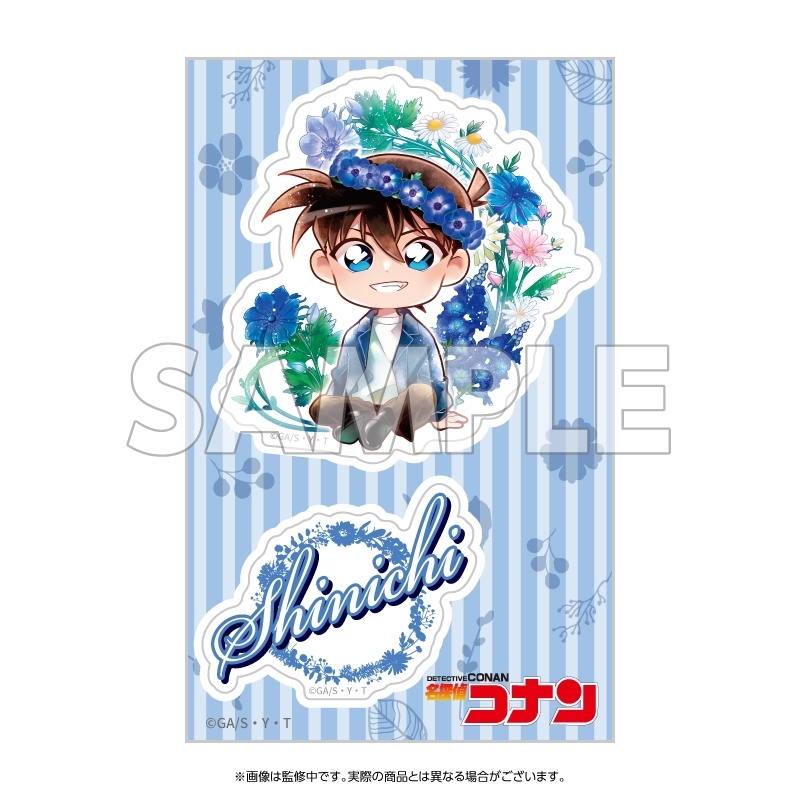 青山剛昌先生原作のアニメ「名探偵コナン」より、キャラクターグッズ『【グッズ-ステッカー】名探偵コナン クリアステッカー デフォルメ 花冠-flow in the wind-(新一)【再販】