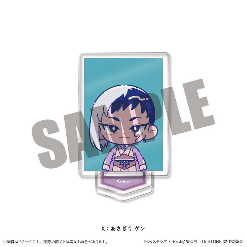 「原作:稲垣理一郎、作画:Boichi」による漫画原作のアニメ「Dr.STONE」(ドクターストーン)より、キャラクターグッズ『【グッズ-スタンドポップ】TVアニメ「Dr.STONE」 IDフォト風ミニミニスタンド にゅ~とろ K あさぎり ゲン
