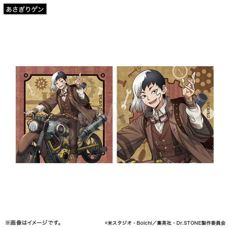 「原作:稲垣理一郎、作画:Boichi」による漫画原作のアニメ「Dr.STONE」(ドクターストーン)より、キャラクターグッズ『【グッズ-ステッカー】Dr.STONE スクエアステッカーコレクション ツーリングver.(全4種)
