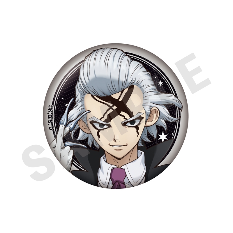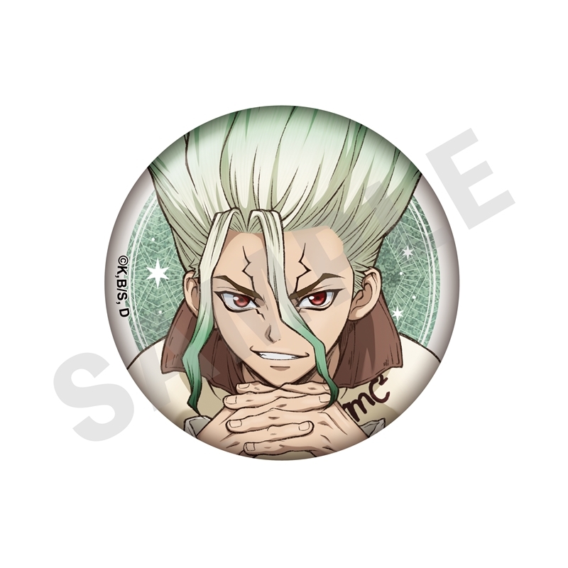 「原作:稲垣理一郎、作画:Boichi」による漫画原作のアニメ「Dr.STONE」(ドクターストーン)より、キャラクターグッズ『【グッズ-バッチ】Dr.STONE トレーディンググリッター缶バッジ(全8種)