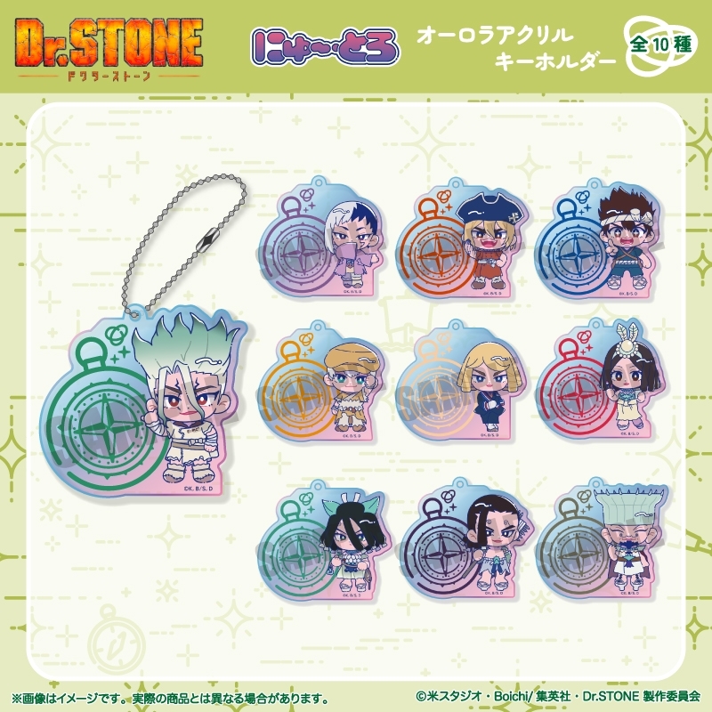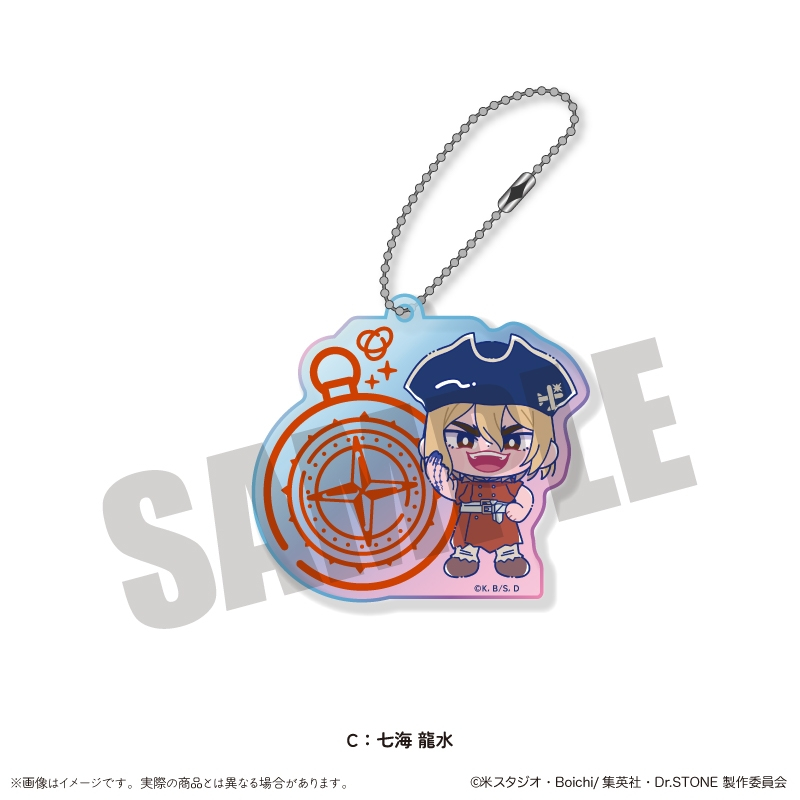 「原作:稲垣理一郎、作画:Boichi」による漫画原作のアニメ「Dr.STONE」(ドクターストーン)より、キャラクターグッズ『【グッズ-キーホルダー】TVアニメ「Dr.STONE」 にゅ~とろ 第二弾 オーロラアクリルキーホルダー C 七海 龍水
