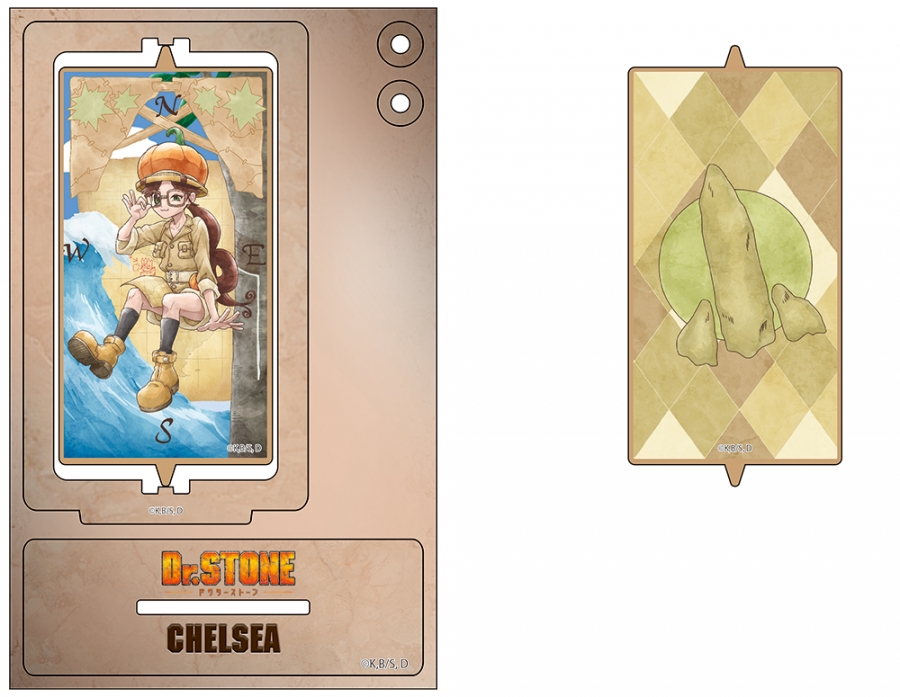 「原作:稲垣理一郎、作画:Boichi」による漫画原作のアニメ「Dr.STONE」(ドクターストーン)より、キャラクターグッズ『【グッズ-スタンドポップ】Dr.STONE 回転アクリルスタンド チェルシー