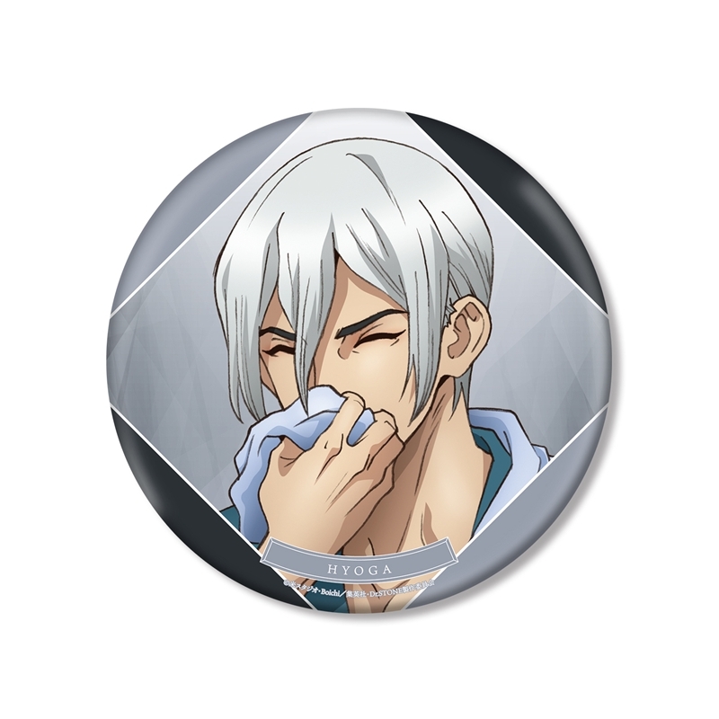 「原作:稲垣理一郎、作画:Boichi」による漫画原作のアニメ「Dr.STONE」(ドクターストーン)より、キャラクターグッズ『【グッズ-バッチ】TVアニメ「Dr.STONE」 描き下ろしイラスト 氷月 石化前ver. BIG缶バッジ【再販】