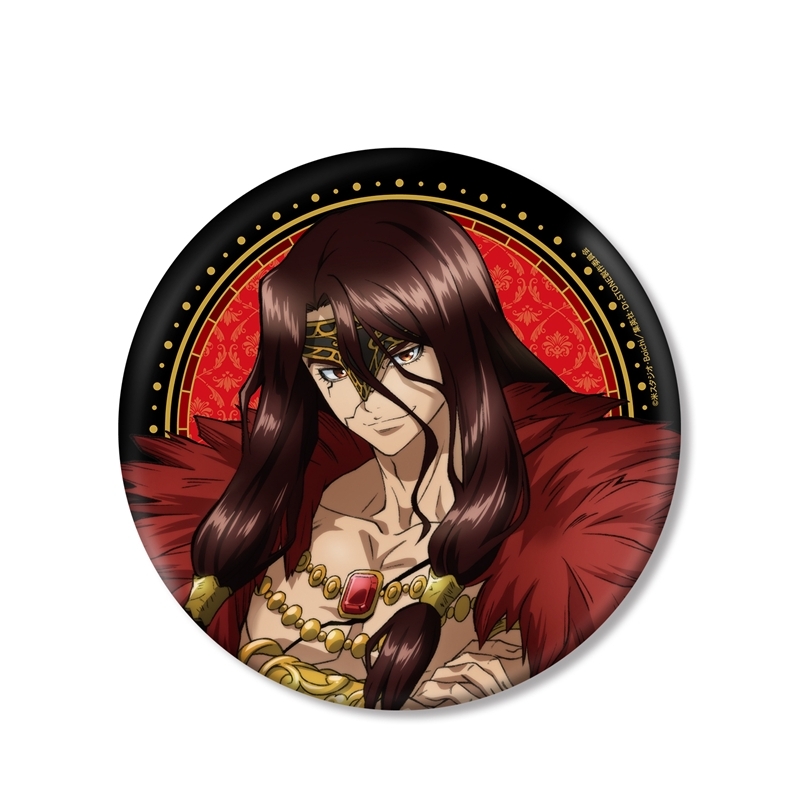 「原作:稲垣理一郎、作画:Boichi」による漫画原作のアニメ「Dr.STONE」(ドクターストーン)より、キャラクターグッズ『【グッズ-バッチ】TVアニメ「Dr.STONE」 描き下ろしイラスト 獅子王司 怪盗団ver. BIG缶バッジ【再販】