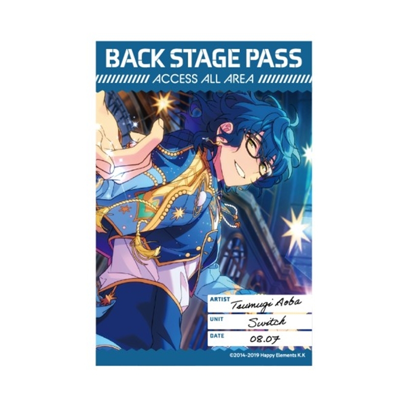 Happy Elements カカリアスタジオが手掛ける3Dで踊るアイドルが楽しめる本格派リズムゲーム「あんさんぶるスターズ!!」(略称: あんスタ)より、キャラクターグッズ『【グッズ-ステッカー】あんさんぶるスターズ!! バックステージPASS風ステッカー 48.青葉つむぎ
