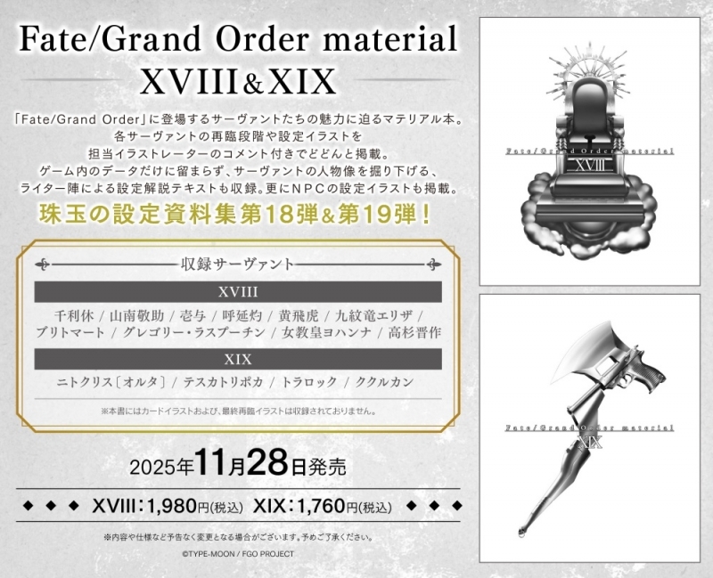 TYPE-MOONによる「Fate/stay night」を始めとした作品シリーズよりキャラクターグッズ『【設定原画集】Fate/Grand Order material XIX
