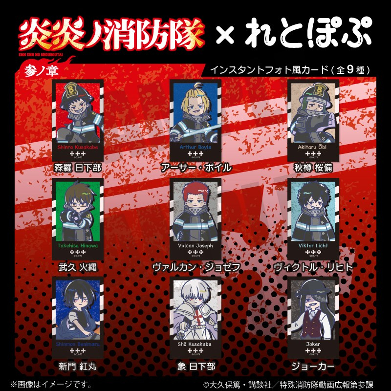 大久保篤先生原作のアニメ「炎炎ノ消防隊」より、キャラクターグッズ『【グッズ-カード】TVアニメ『炎炎ノ消防隊 参ノ章』 れとぽぷ インスタントフォト風カード(全9種)ヴァルカン・ジョゼフ