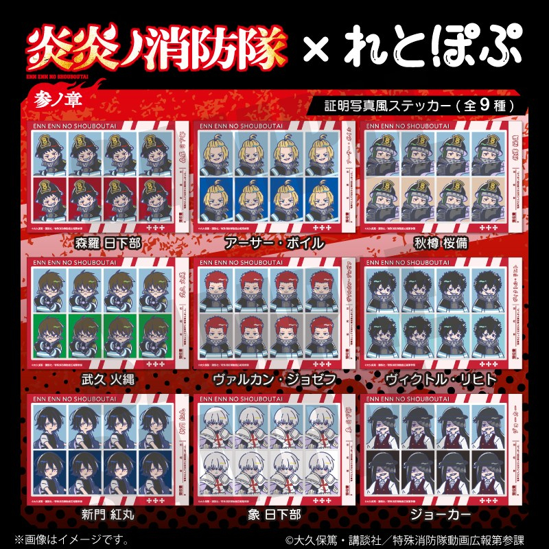 大久保篤先生原作の人気アニメ「炎炎ノ消防隊」より、キャラクターグッズ『【グッズ-ステッカー】TVアニメ『炎炎ノ消防隊 参ノ章』 れとぽぷ 証明写真風ステッカー(全9種)アーサー・ボイル