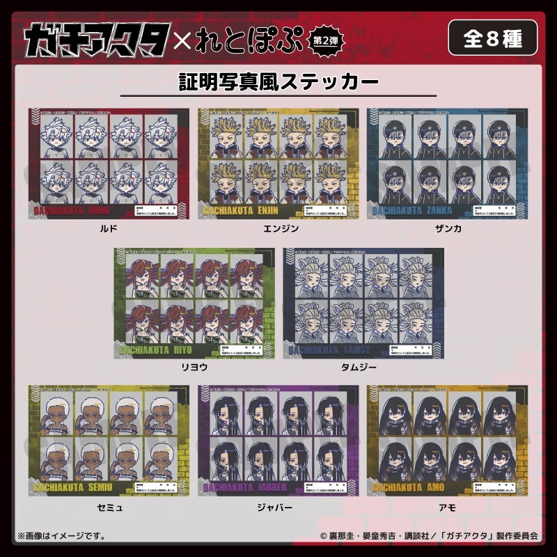 週刊少年マガジン(講談社)で連載中の裏那圭先生原作によるアニメ「ガチアクタ」より、キャラクターグッズ『【グッズ-ステッカー】TVアニメ「ガチアクタ」 れとぽぷ 第2弾 証明写真風ステッカー(全8種)ジャバー