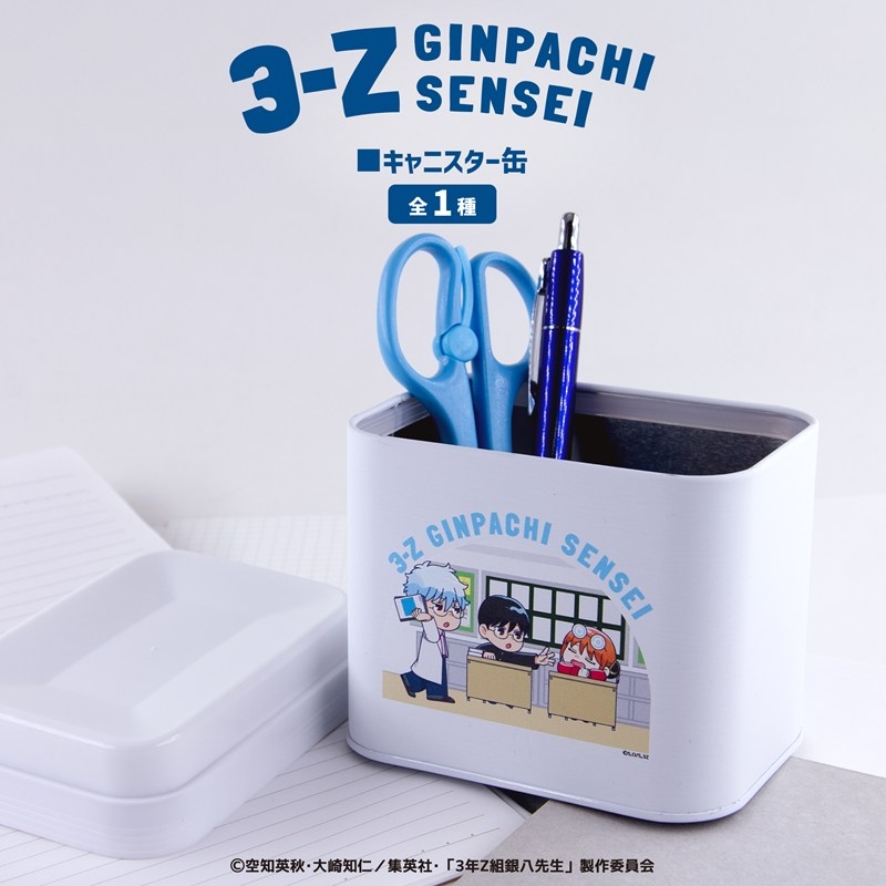 空知英秋原作の20周年を迎えたアニメ「銀魂」より、キャラクターグッズ『【グッズ-小物入れ】TVアニメ「3年Z組銀八先生」 キャニスター缶 01.坂田銀八・志村新八・神楽