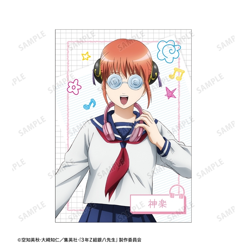 空知英秋原作の20周年を迎えたアニメ「銀魂」より、キャラクターグッズ『【グッズ-カード】3年Z組銀八先生 描き下ろし 神楽 ヘッドフォンver. A5イラストカード