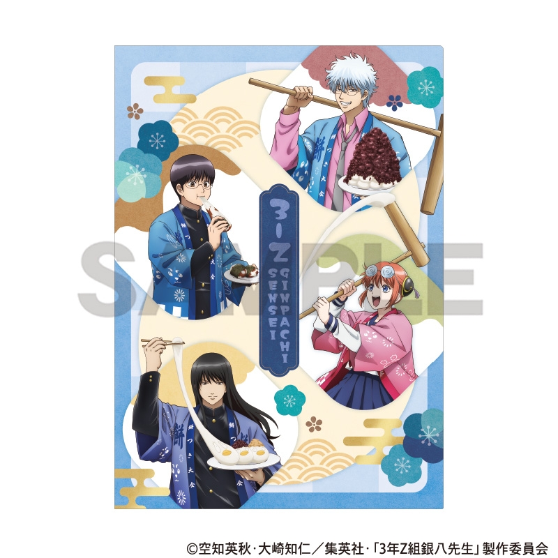 空知英秋原作の20周年を迎えたアニメ「銀魂」より、キャラクターグッズ『【グッズ-ファイル】3年Z組銀八先生 シングルクリアファイル ブルー 餅つき大会