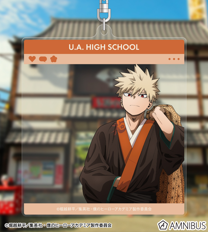 堀越耕平原作のTVアニメ「僕のヒーローアカデミア」より『描き下ろし 爆豪勝己 花やしきver. SNS風BIGアクリルキーホルダー』が、AMNIBUSで。
