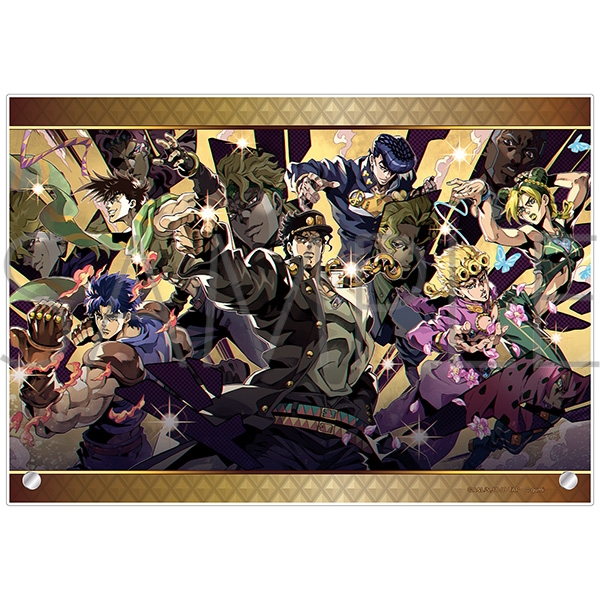 豪華キャラクターが大集合のイラストがアクリルパネルになって登場ッ!(C)A&L/S,JOJO TAP (C) gumi