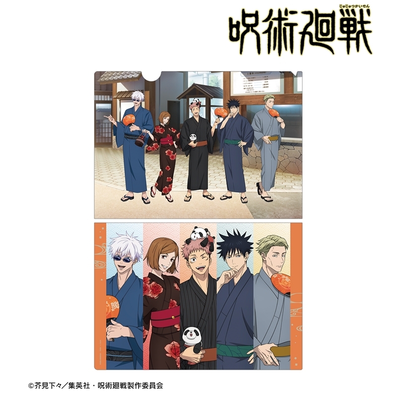 芥見下々先生原作のアニメ「呪術廻戦」より、キャラクターグッズ『【グッズ-クリアファイル】TVアニメ「呪術廻戦」 描き下ろし 集合 浴衣ver. クリアファイル