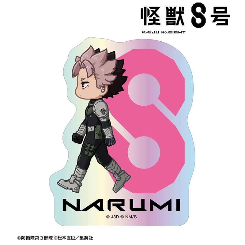 松本直也原作のアニメ「怪獣8号」より、キャラクターグッズ『【グッズ-ステッカー】怪獣8号 鳴海弦 ちびとこ オーロラステッカー
