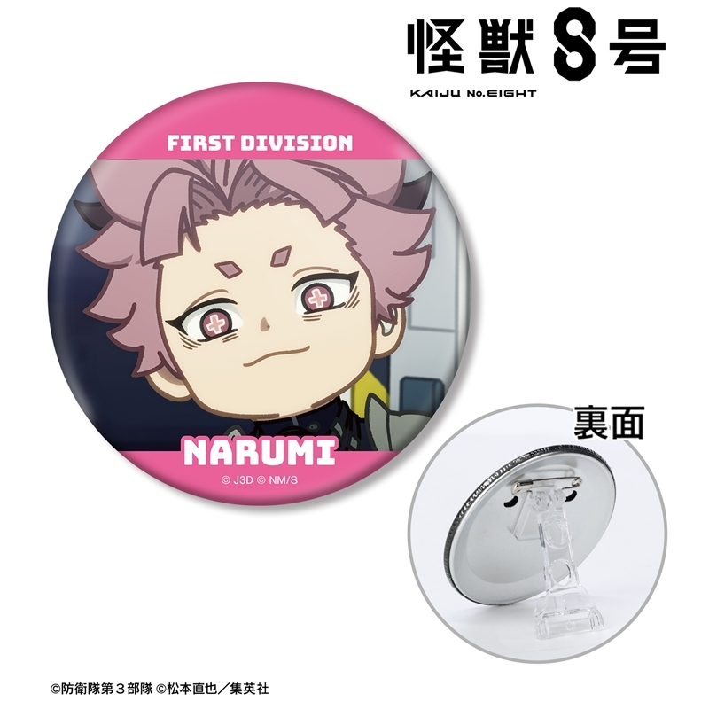 松本直也原作のアニメ「怪獣8号」より、キャラクターグッズ『【グッズ-バッチ】怪獣8号 鳴海弦 ゆるコマ 3WAY缶バッジ