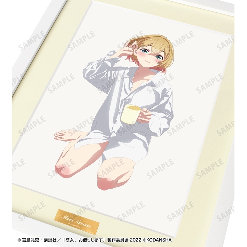 宮島礼吏先生原作のアニメ「彼女、お借りします」(略称: かのかり)より、キャラクターグッズ『【グッズ-ボード】TVアニメ『彼女、お借りします』 描き下ろしイラスト 七海麻美 彼シャツver. キャラファイングラフ【再販】