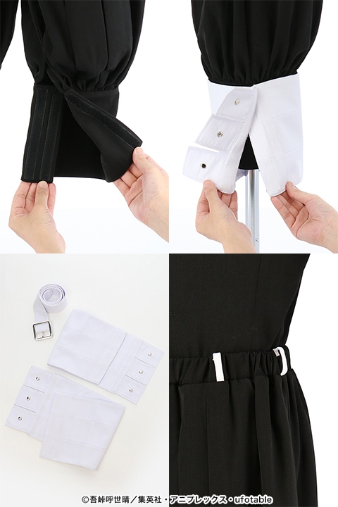 袴は膝から下を細く絞った裁着袴の形状で、ウエスト部分はベルト留めができる洋装パンツ仕様です。