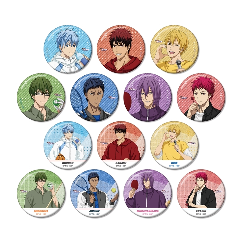 藤巻忠俊原作のTVアニメ「黒子のバスケ」より、キャラクターグッズ『【グッズ-バッチ】黒子のバスケ 描き下ろし スポーツホリデーver. トレーディンググリッター缶バッジ【特典付】