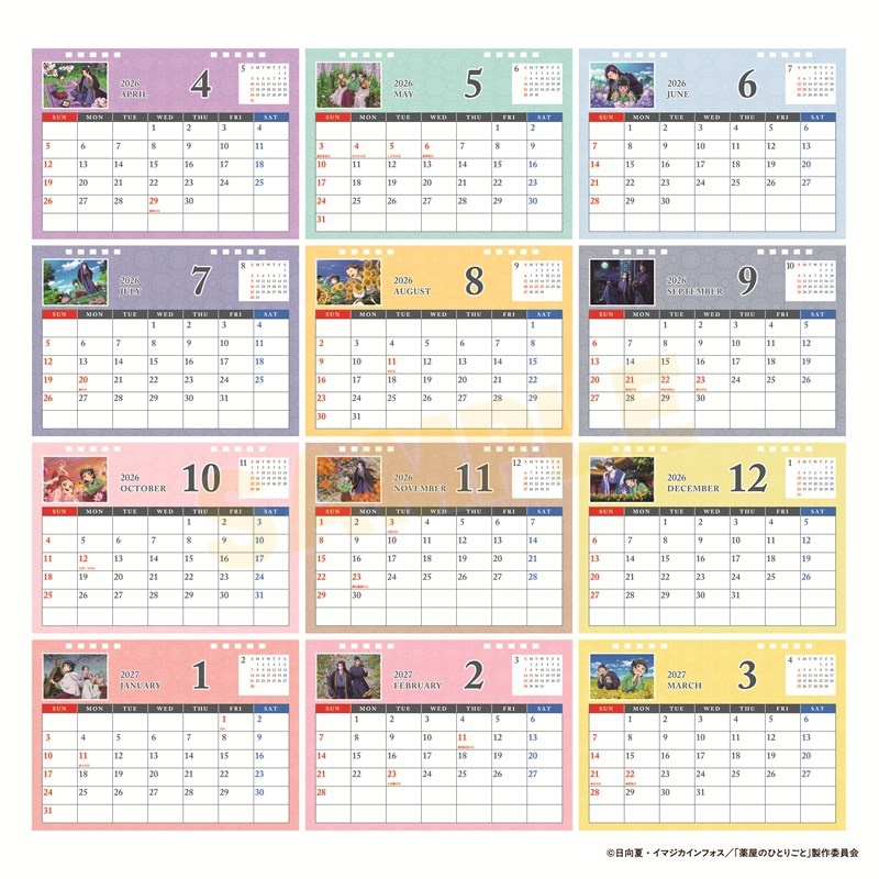 日向夏先生原作のTVアニメ「薬屋のひとりごと」よりキャラクターグッズ『【カレンダー】薬屋のひとりごと 卓上カレンダー