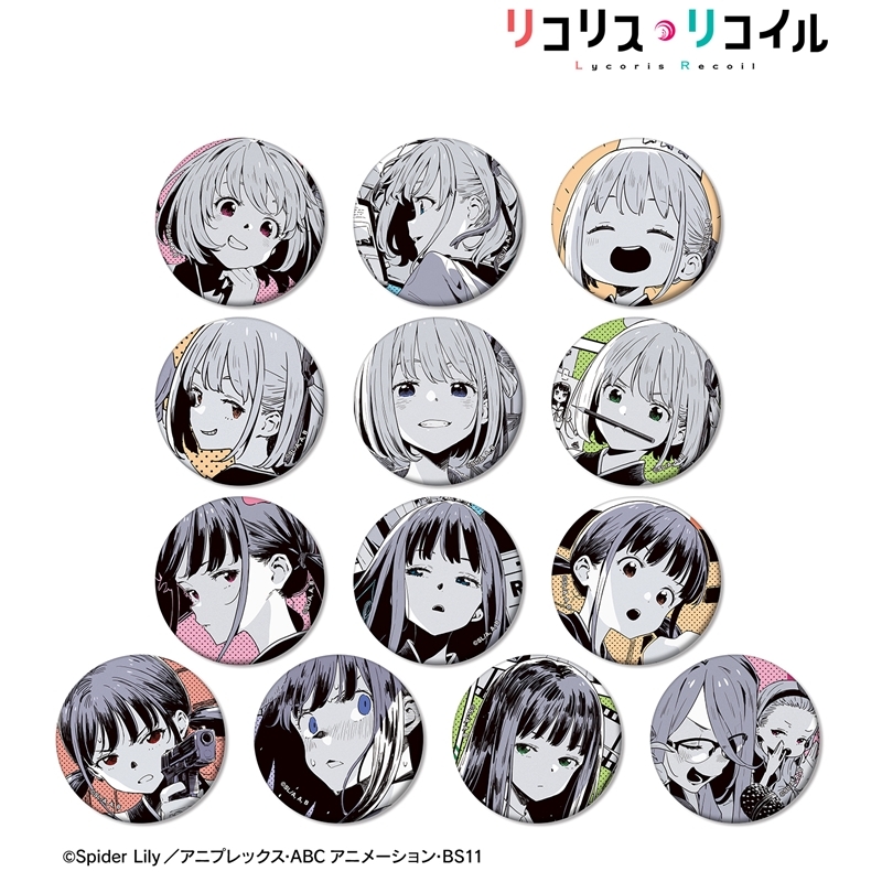 「A-1 Pictures制作 × アサウラ先生原案」によるアニメ「リコリス・リコイル」より、キャラクターグッズ『【グッズ-バッチ】TVアニメ「リコリス・リコイル」 トレーディングショートムービーマット缶バッジ【アニメイト特典付】