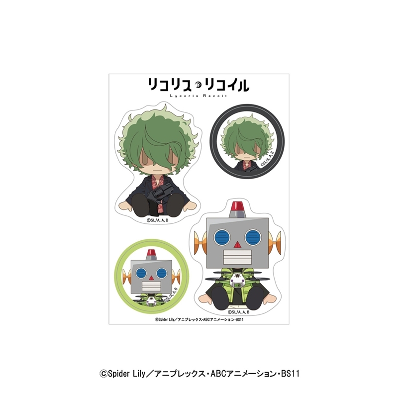 「A-1 Pictures制作 × アサウラ先生のストーリー原案 × Spider Lily原作」によるアニメ「リコリス・リコイル」より、キャラクターグッズ『【グッズ-ステッカー】リコリス・リコイル GG3耐ステッカー 真島・ロボ太(すわってマスコット!Ver.)