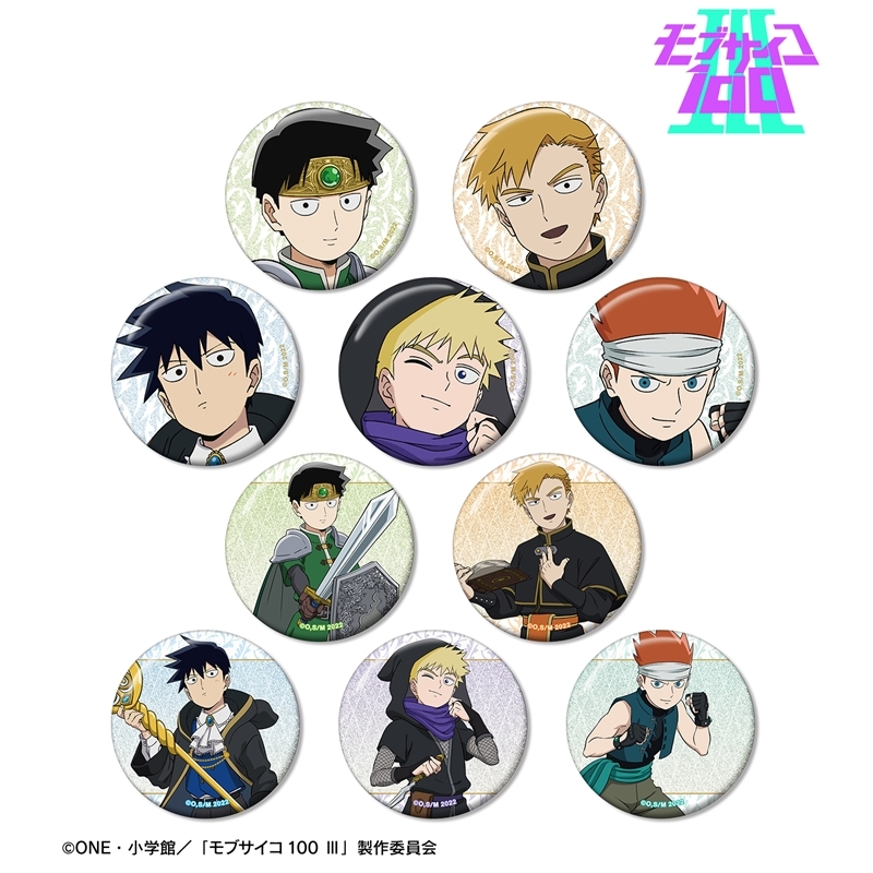 ONE原作のアニメ「モブサイコ100」よりキャラクターグッズ『【グッズ-バッチ】モブサイコ100 Ⅲ 描き下ろし RPG ver. トレーディンググリッター缶バッジ【特典付】