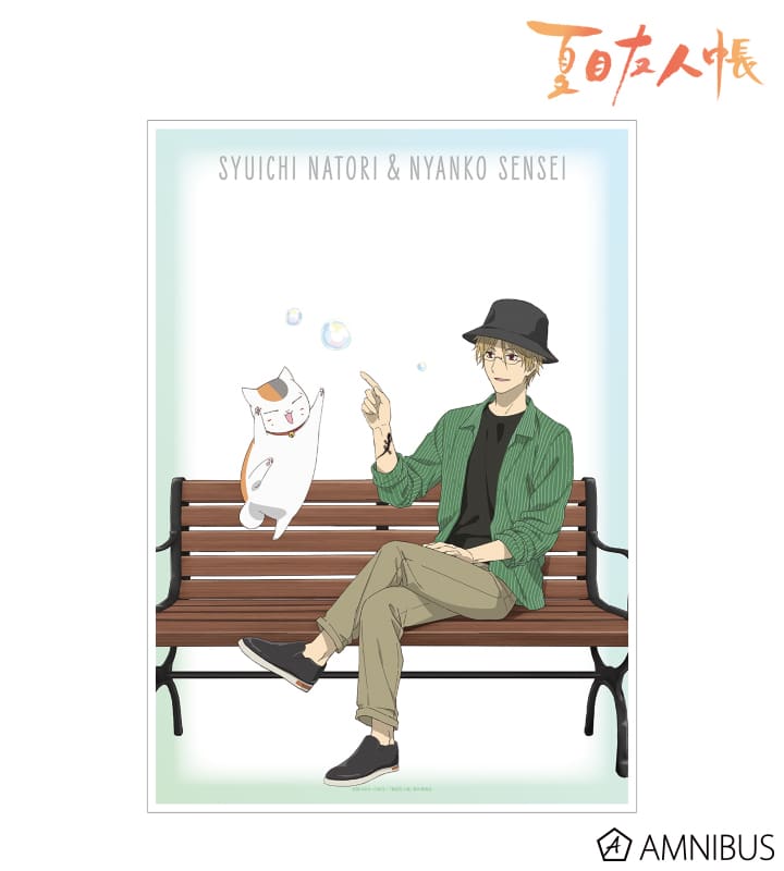 緑川ゆき原作の人気アニメシリーズ「夏目友人帳」より『描き下ろしイラスト 名取周一&ニャンコ先生 シャボン玉ver. A3マット加工ポスター』が、AMNIBUSで。