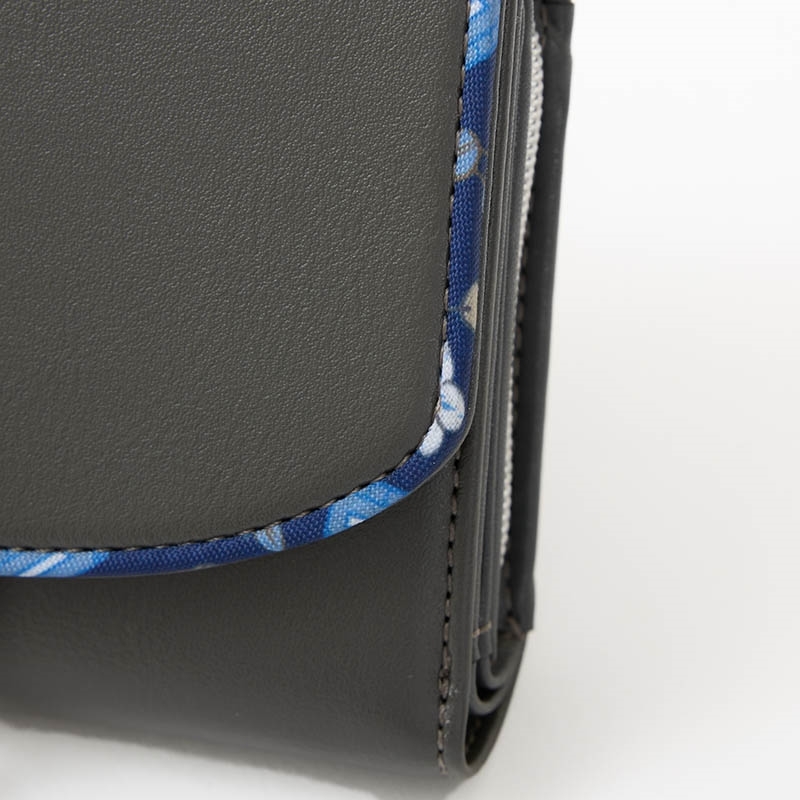 フラップの縁にちらりと見えるデザイン生地がアクセント。