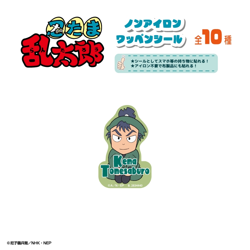 尼子騒兵衛先生原作のアニメ「忍たま乱太郎」より、キャラクターグッズ『【グッズ-シール】忍たま乱太郎 ノンアイロンワッペンシール 食満留三郎