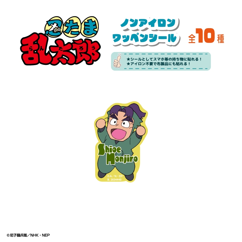 尼子騒兵衛先生原作のアニメ「忍たま乱太郎」より、キャラクターグッズ『【グッズ-シール】忍たま乱太郎 ノンアイロンワッペンシール 潮江文次郎
