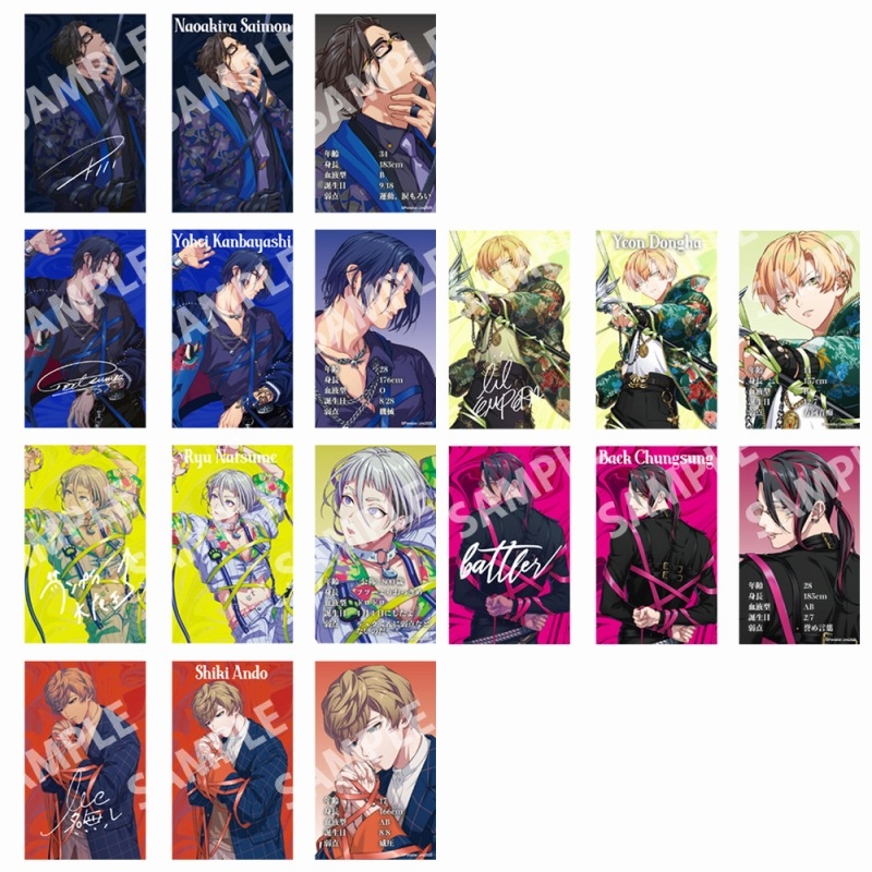 アーティスト毎の絵柄が2種類!それぞれでビジュアル、プロフィール情報を記載し、共通裏面には、「弱点」を新たに記載!!
