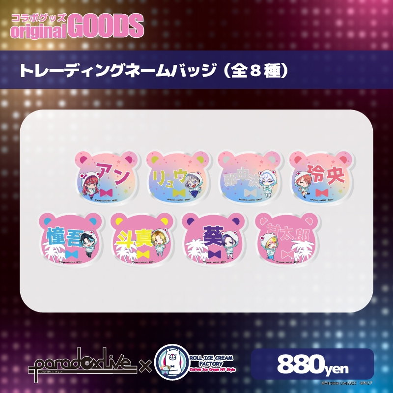 エイベックス×ジークレストによるHIPHOPメディアミックスプロジェクト「Paradox Live (パラドックスライブ)」より、キャラクターグッズ『【グッズ-バッチ】『Paradox Live』 トレーディングネームバッジ【ロールアイスクリームファクトリー】