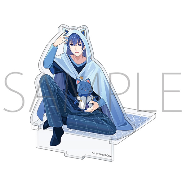 ルームウェアを着てwithCATと一緒にくつろいでいる姿の描き下ろしイラストを使用したアクリルスタンドが登場! 台座と組み合わせることで棚の縁などに座らせることも可能です。