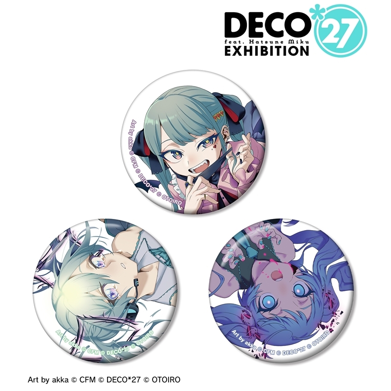 「プロジェクトセカイ カラフルステージ!」(略称: プロセカ)でも活躍するバーチャルシンガー「初音ミク」より、キャラクターグッズ『【グッズ-バッチ】DECO*27 feat.初音ミク EXHIBITION Produced by DECO*27 / OTOIRO キービジュアル 缶バッジ3個セット ver.B