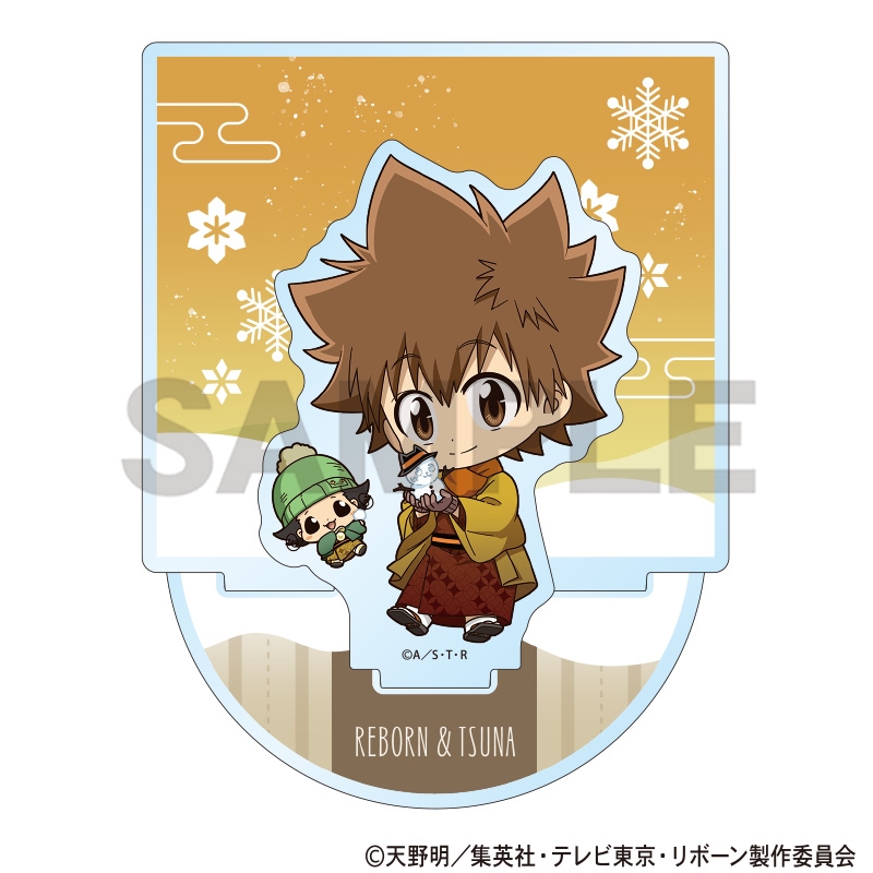 天野明原作のTVアニメ「家庭教師ヒットマン REBORN!」よりキャラクターグッズ『家庭教師ヒットマンREBORN! ジオラマアクリルスタンド リボーン&沢田綱吉 冬着物 ミニキャラ