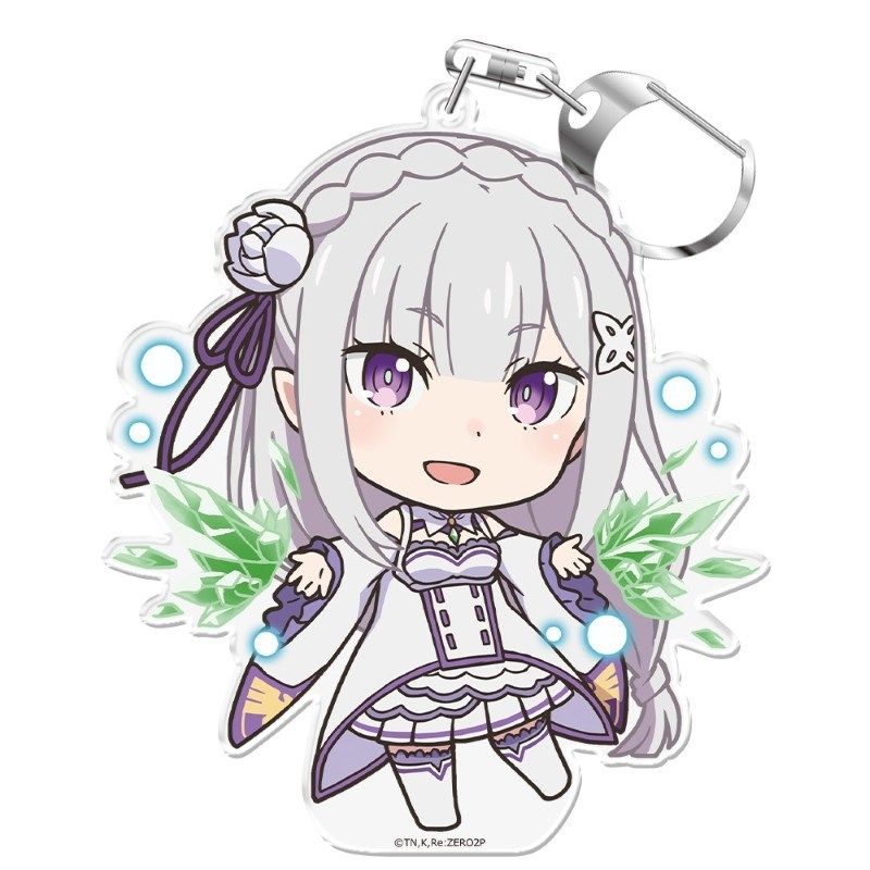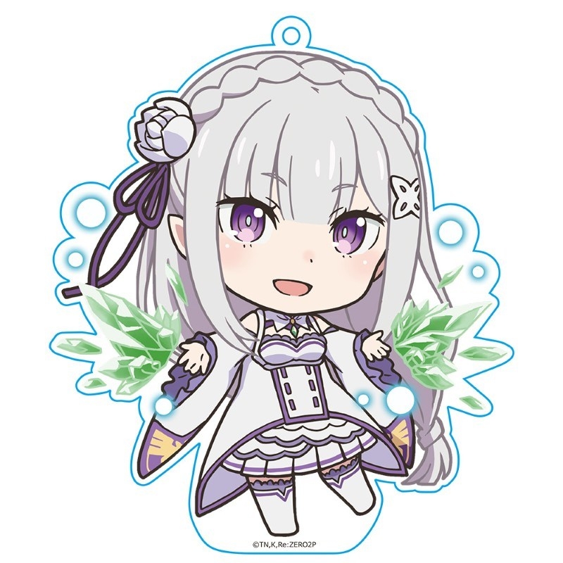 長月達平先生原作のアニメ「Re:ゼロから始める異世界生活」(通称: リゼロ)より、キャラクターグッズ『【グッズ-キーホルダー】Re:ゼロから始める異世界生活 ぷにこれ!キーホルダー(スタンド付) エミリア ver.2【再販】