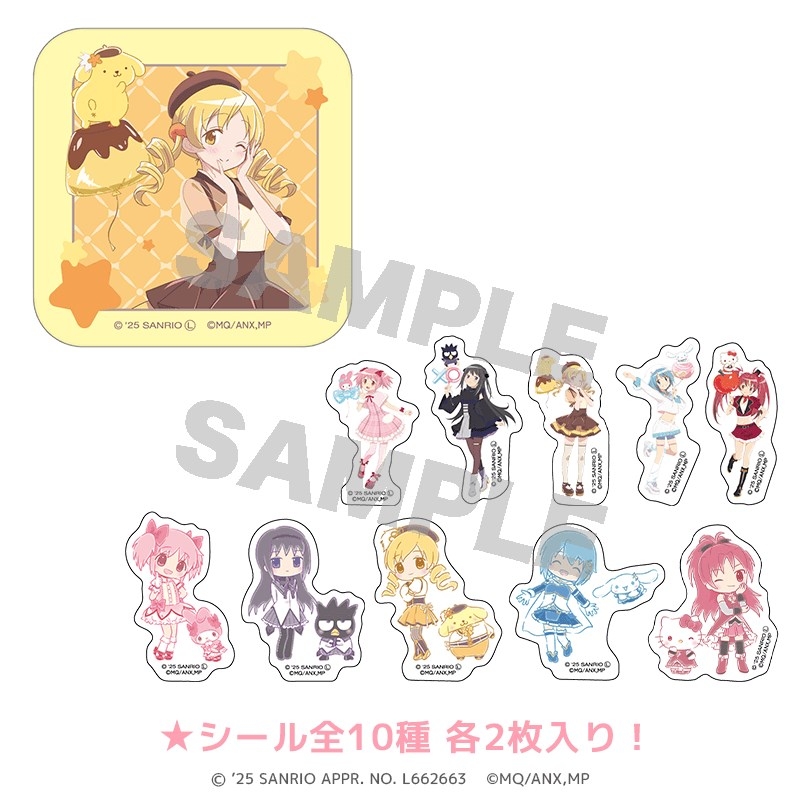 【グッズ-シール】サンリオキャラクターズ×魔法少女まどか☆マギカ 缶入りフレークシール 巴 マミ×ポムポムプリン 等身&ミニキャラver.(20枚入り)