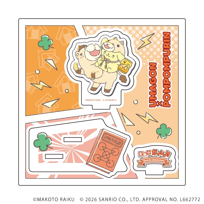 株式会社サンリオが手掛ける大人気キャラクター「サンリオキャラクターズ」より、関連アイテム『【グッズ-スタンドポップ】金色のガッシュ!!×サンリオキャラクターズ アクリルスタンドプレート04/ウマゴン×ポムポムプリン(コラボイラスト)