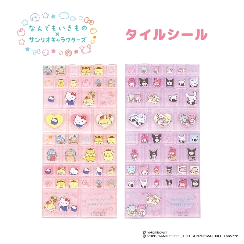 サンリオが手掛ける大人気キャラクター「サンリオキャラクターズ」より、サンリオの関連アイテム『【グッズ-シール】なんでもいきもの×サンリオキャラクターズ タイルシール (ピンク)