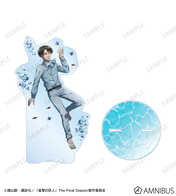 諫山創原作のTVアニメ「進撃の巨人」のキャラクターグッズ『描き下ろしイラスト リヴァイ 水中浮遊ver. 特大アクリルスタンド』が、AMNIBUSで2025年11月上旬より順次発送。