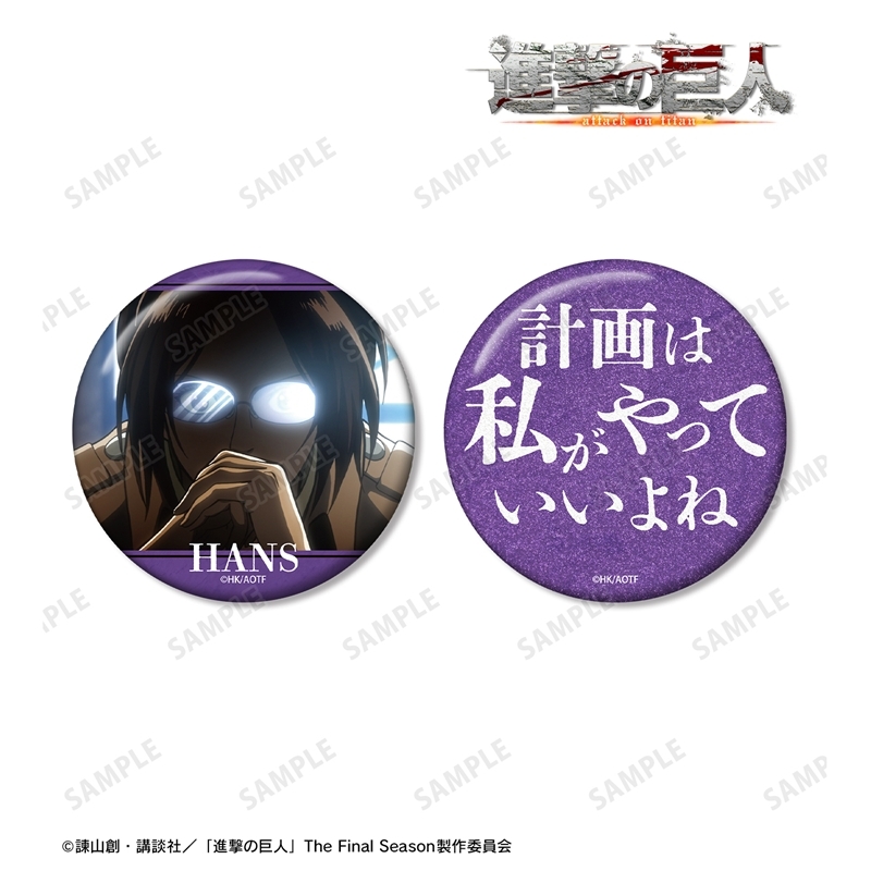 諫山創先生原作のアニメ「進撃の巨人」より、キャラクターグッズ『【グッズ-バッチ】TVアニメ『進撃の巨人』 ハンジ 75mm缶バッジ2個セット